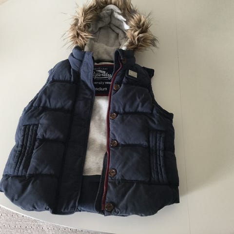 Vest Superdry str. M / 40. Sort bundfarve og i fin stand. Iflg. Superdry tabel er den til brystmål 91. Hvis du ønsker mål så skriv endelig til mig. Ann. nr. P805