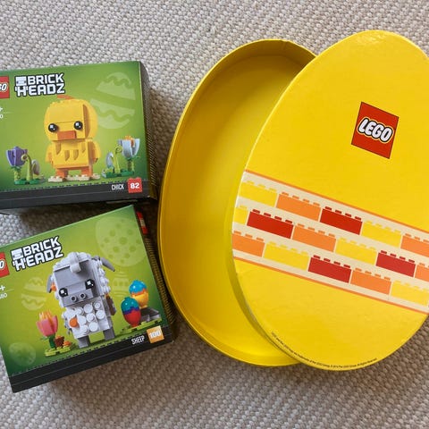 Lego påskeæg i karton med brick headz kylling 40350 og brick headz bunny 40271. Ny/ubrugt i originale emballager.