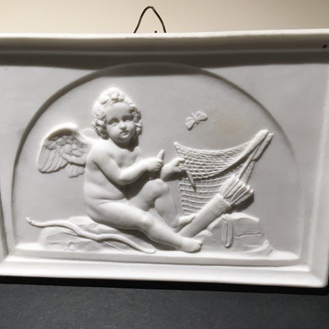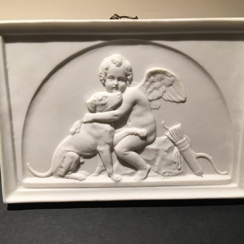 Bing og Grøndahl, 1855, Amor kærtegner den tro hund No 72. Kopi fra 1855 after Thorvaldsens original fra Rom 1831. Måler 13 x 9,5cm (5.11 x 74 inch).