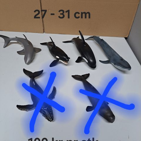 Hvidhaj, blåhval, gekko (ikke schleich) ankylosaurus