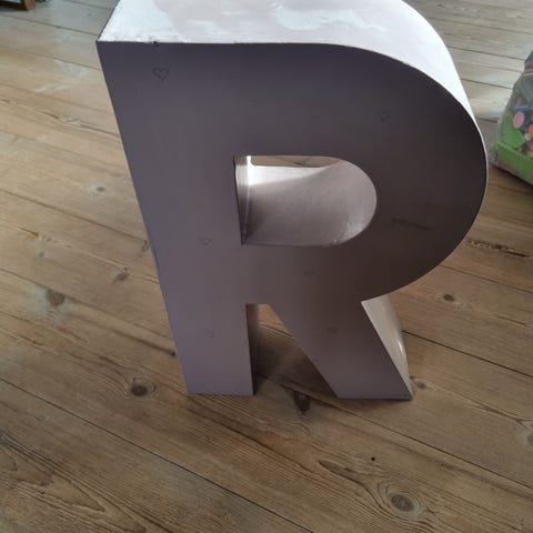 Flot, gammelt facade bogstav i metal hvor malingen næsten er skallet helt af.