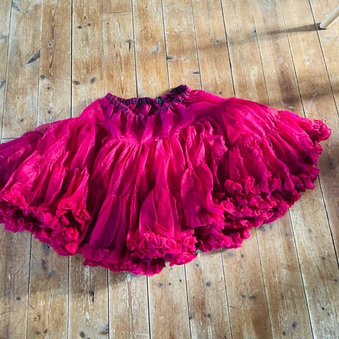 Gammelrosa tylskørt med guld stjerner, til lige under knæet.