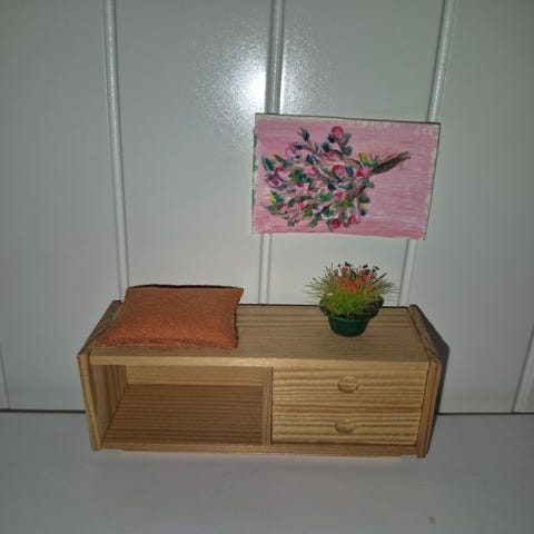 Lisa, telefonbænk / bænk med pude. Dukkehus møbel.