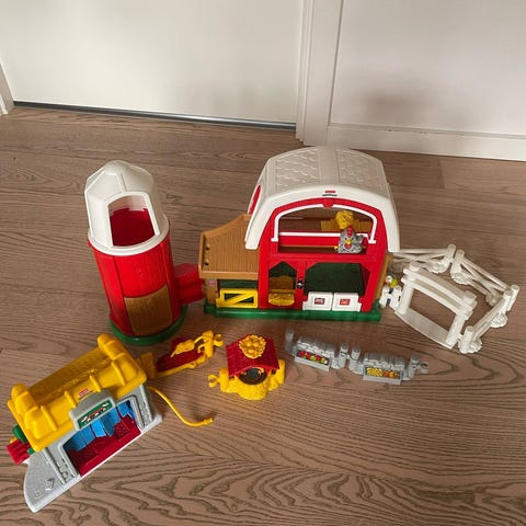 Indeholder lille og stor bonde gård, legeplads, cirkus vogn, ridderborg, bus og familie hus.