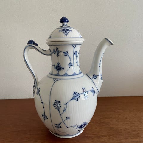 Musselmalet, riflet Kaffekande, Royal Cph. Ingen afslag. Fin stand - smuk!