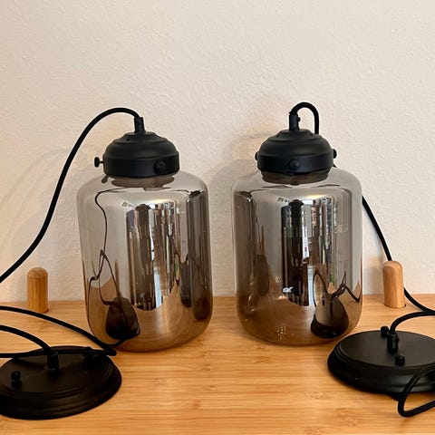 To ens glaspendler med messingtop, sikkert antik. Sælges samlet til 500 kr. eller 300 kr. pr. stk.