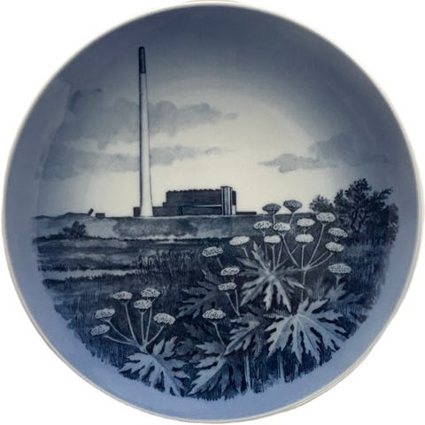 Flot blå platte fra Royal Copenhagen, som fejre den første mand på månen i 1969.