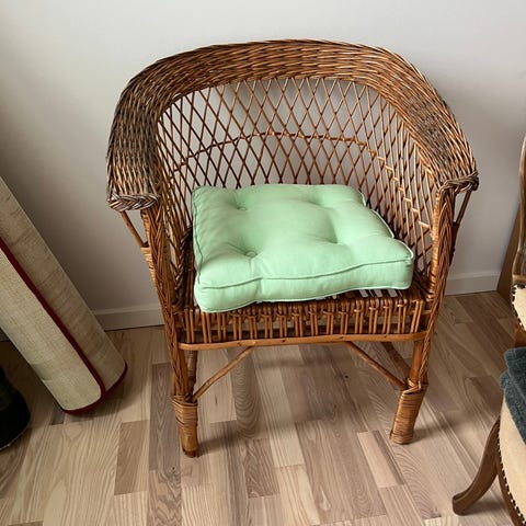 GYNGESTOL i smuk hvidt flet / en vintage stol i rigtig pæn stand.