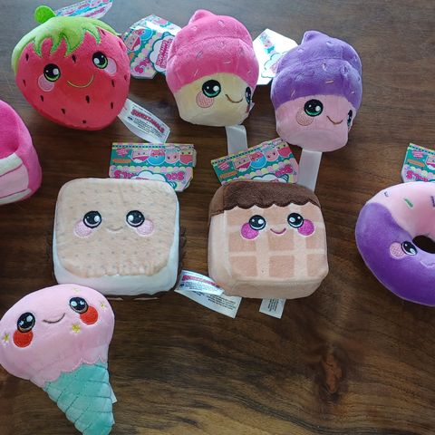 Bamser, Squeezamals, Squeezamals bamser i form af vaffelis, lækker muffin med blåbærtopping og krymmel. Kage med skum og karamel. Alle bamser har hver deres personlighed, sågar også deres helt egen duft. Sælges samlet.