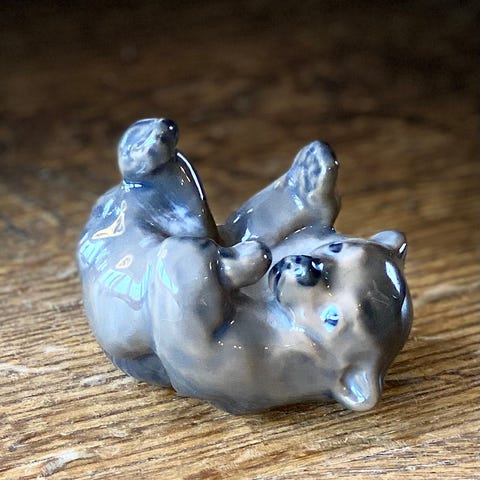 Flot og velholdt uden nogen form for fejl: Royal Copenhagen Figur Bjørneunge No. 1124. Designet af Knud Kyhn. Lysegrå farve.
