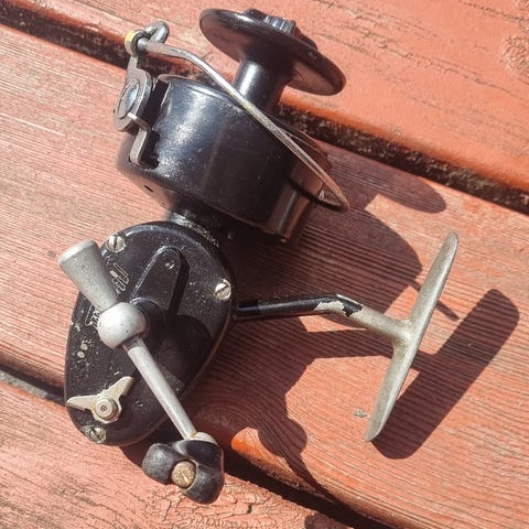Vintage Mitchell 306 fastspolehjul fra 50/60erne incl salgsbrochure