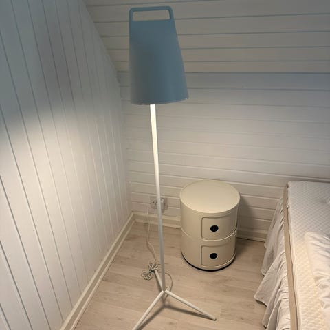 Flot Normann Copenhagen gulvlampe. Den skønne Stage har et simpelt og elegant formsprog der passer godt til både det moderne og klassiske hjem. Lampen er designet af italienske Daniel Debiasi og Federico Sandari, de har fokuseret på at skabe en bevægelig lampe med et rart varmt lys. Derfor er lampen inspireret af profesionelle projektørlamper, idet skærmen kan vippes i den retning man ønsker.