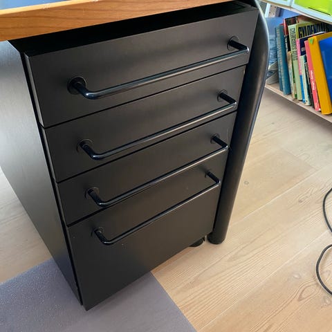 3 skuffer og et stort opbevaringsrum