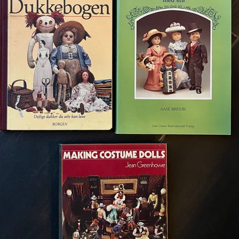 20 sider med farveillustrationer og opskrifter på dukketøj.