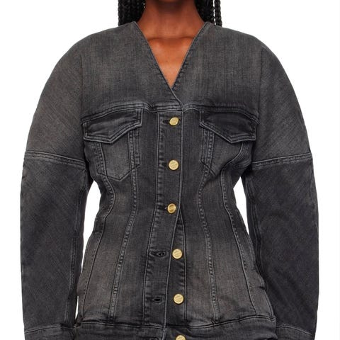 Meget velholdt jeans jakke som kan samles ind i tajlen og lynes helt op hvis man har behov for det.
