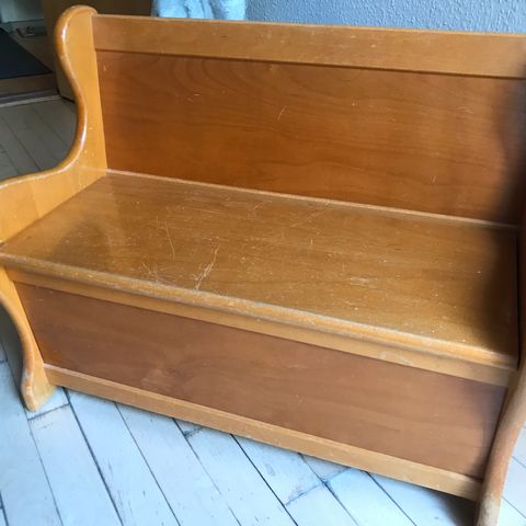 Gammel solgul retro børnebænk fra 1970erne. Solid og robust. Træ med slidt maling. Mål 63x51x34cm
