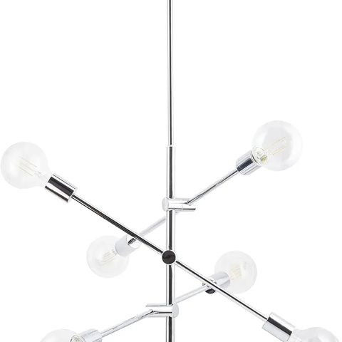 Farverig lysekrone med rød, gul, orange, blå, lyserød. Eksempelvis til børneværelse. Led pærer medfølger