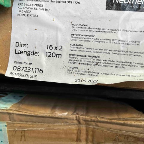 22 mm pex godkendt til koldt og varmt vand. Til brugsvand. R-i-r
