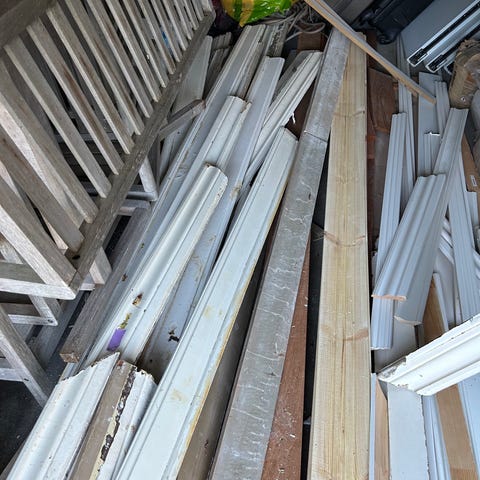 Gammelt panel/stukliste i massiv træ. Har formentlig siddet i hus fra 1909.
