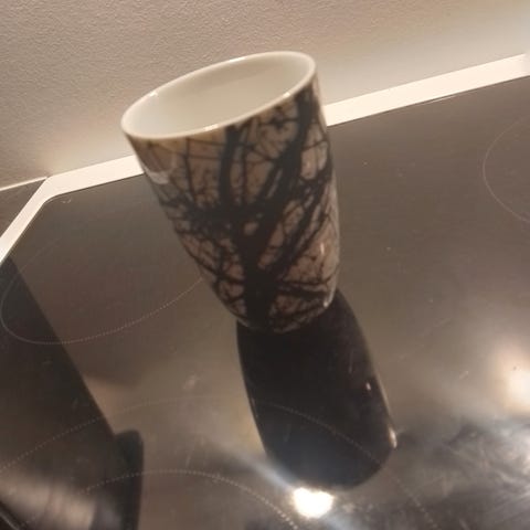 Kruset er 10,4 cm højt og har en diameter på 8 cm.