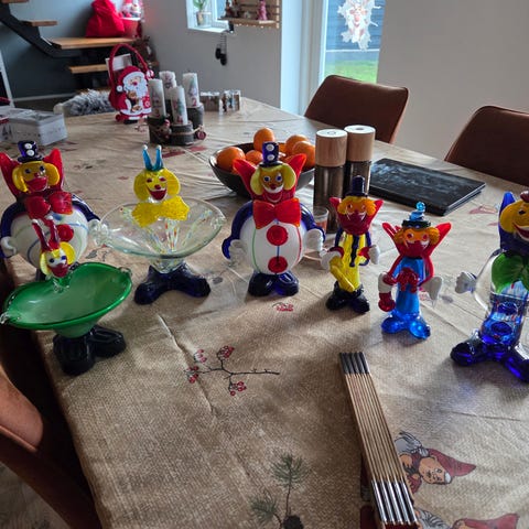 Velholdte, vintage håndmalede porcelæns klovnefigurer.