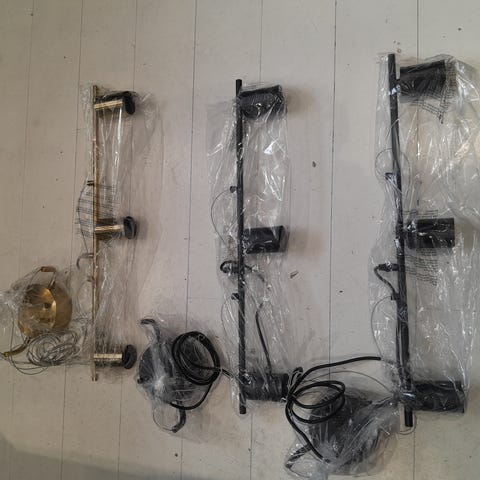 Messinglampe til 5 pærer - anløber ikke, kan bruge LED pærer.