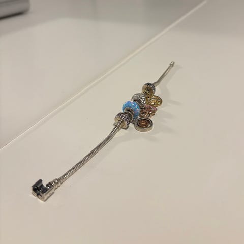 Dette smukke armbånd i sølv fra Pandora har 6 charms og er en dejlig gave til konfirmanden eller bruden eller veninden eller en datter det måler 18 cm uden lås 19 cm med lås se billeder anstændige bud modtages kom julemanden i forkøbet og køb gaverne nu eller konfirmations gaven