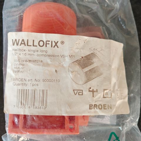 Broen Wallofix wall-box single ½" x 16 mm