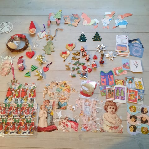 Jule glansbilleder. Hvad har du i din sæk julemand
