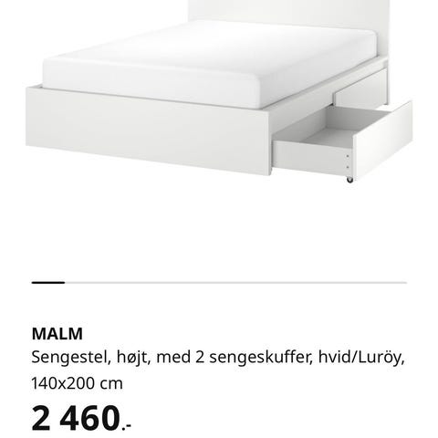 Nypris for Malm sengestel kr 3.600,-. Nypris for HÖVÅG 1.700. Sælges samler kr 2.000,-.