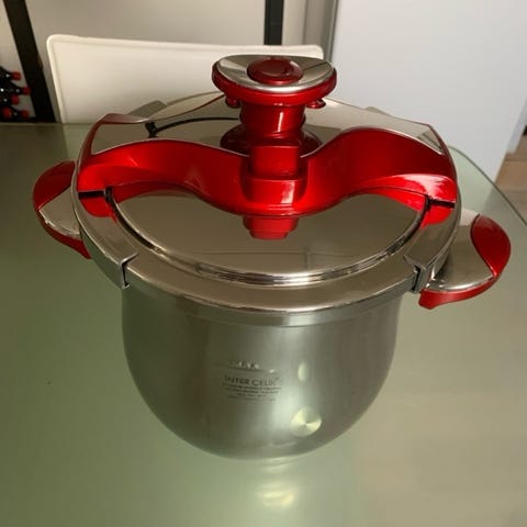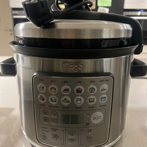 Derudover har den de kendte fordele ved en trykkoger. På den måde bliver maden så nænsomt tilberedt, at både smag og vitaminer bevares optimalt. Der er et program til kød og fisk og et program til grøntsager.