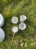 5x frokost tallerkner, 5x dybe tallerkner, 5x kagetallerkner, 5x kaffekopper, 5x underkopper, 4x æggebægere, 1x askebæger samt thèkande - sælges samlet.