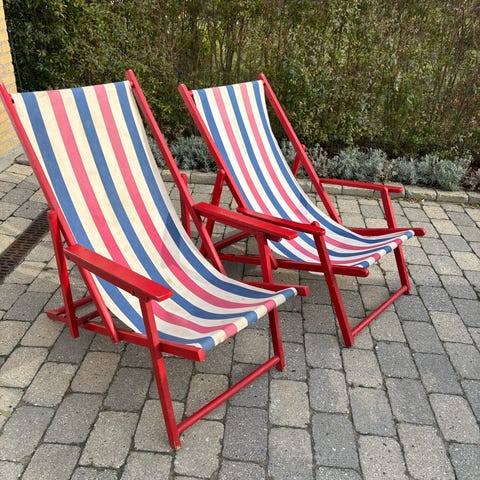 To godt brugte men stadig ok strandstole / havestole / lounge stole til haven, terrassen eller altanen. Prisen er for dem begge tilsammen. Skal afhentes i Vedbæk. Har mobilepay.