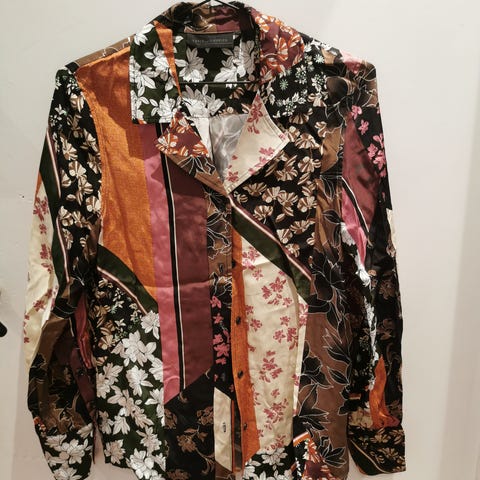 Karen by Simonsen kortæmet skjorte med blomsterprint i gul, hvid, grøn, lilla, orange, lyserød. Str. 34. Jeg har målt blusen, da den lå ned. Fra armhule til armhule: 48 cm. Fra hals og ned: 55 cm. Style: CaliKb shirt. 100% bomuld. Brugt få gange. Nypris: 700kr