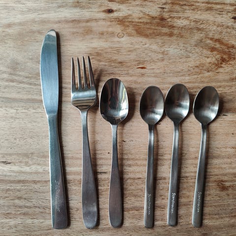 Bestiksæt i tre dele. Aldrig brugt. Designet af Jørgen Møller