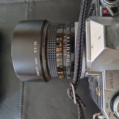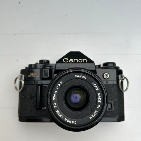 Canon AT-1, udstyret med et 35 mm f/3.5 objektiv, er en berømt model fra slutningen af 1970'erne, designet til fotografer, der foretrak manuel kontrol over automatiske funktioner. Som en søskende til den populære AE-1 tilbød AT-1 en mere praktisk oplevelse, hvilket gjorde den til en favorit blandt fotopurister. Dens robuste opbygning og pålidelighed har bestået tidens prøve. En sjov kendsgerning om AT-1 er, at det var et af de få spejlreflekskameraer på sin tid, der ikke havde en automatisk eksponeringstilstand, hvilket understreger Canons engagement i traditionelle fotograferingsteknikker.