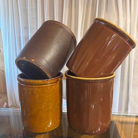 Syltekrukke fra Knabstrup. Rummer 5 liter. Højde 22,5 cm. Diam. 11 cm.