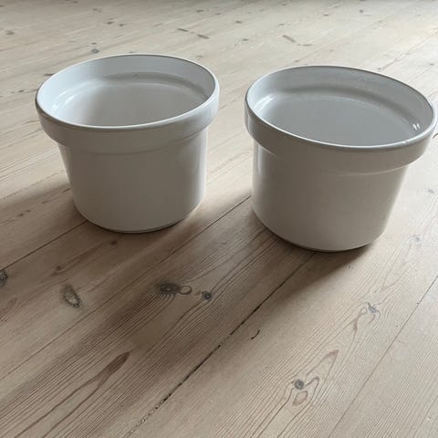 2 hvide krukker med kork låg