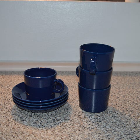 20 små mørkeblå kopper med tilhørende underkopper fra Arabia, Teema