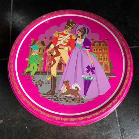 Dåser, 3 stk. kagedåser / dåser, 2 Quality Street, ø 14 cm + blank dåse 26 x 19,5 x 5 cm. Samlet pris.