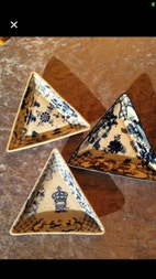 Særdeles smukke, uhørt sjældne og meget gamle/antikke 3-kantede Håndmalede skåle