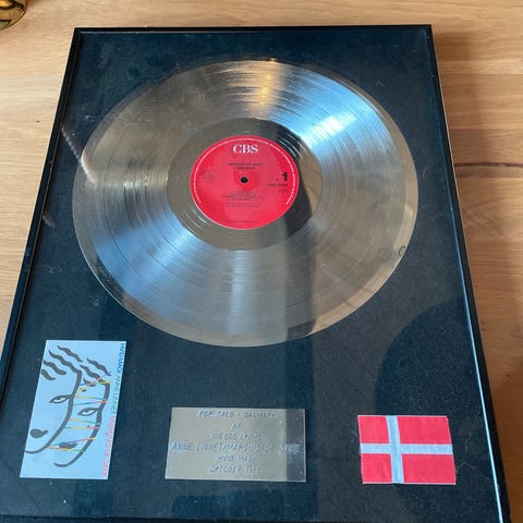 Anne Linnet Sølvplade for 25000 solgte enheder af Marquis De Sade og Hvid Magi
