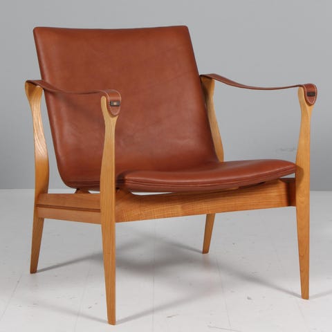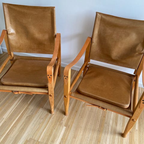 2 stk Safaristole fra Karen og Ebbe Clemmensen med læder og stel i ask. Fremstillet hos Fritz Hansen.