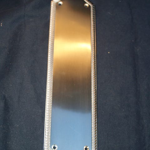 Viktoriansk "fingerplate" til døren. På viktoriansk tid havde man i England altid finger plader på døren så hånden ramte pladen og ikke døren. Så undgik man at døren blev grim af snavsede finger og flot er den jo også på døren.