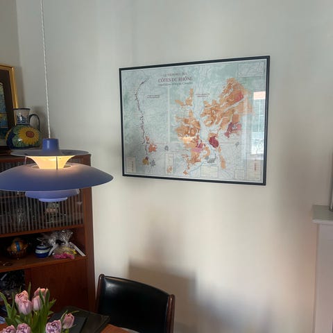 På billedet står der: Les Vins De France Cotes Du Rhone.