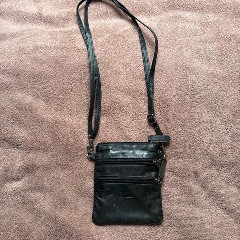 Sort skuldertaske med 2 lynlåsrum. Et stort med et lille et indeni.