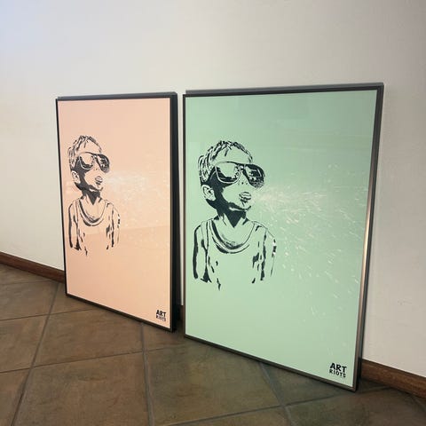 Indrammet med sort aluminiumsramme med rigtigt billedglas (sort træramme samme pris)