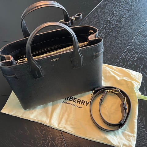 Klassisk Burberry håndtaske i yndig størrelse, med dertil hørende dustbag