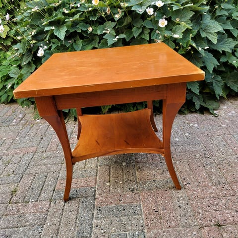 Sidebord / lille sofabord i lyst træ og med krom stel