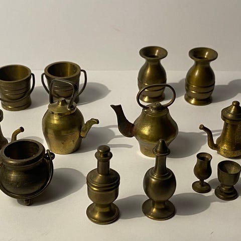 Dukketilbehør, Gamle køleskabe i metal til dukkehus, Skønne gamle køleskabe til dukkehus.